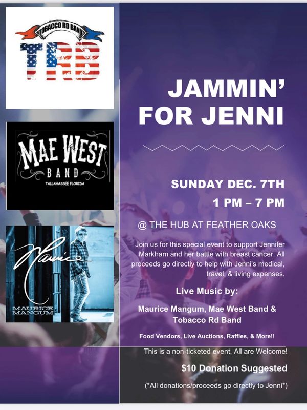 DEC 7....JAMIN' FOR JENNI AT THE HUB AT FEATHER OAKS....1 PM
